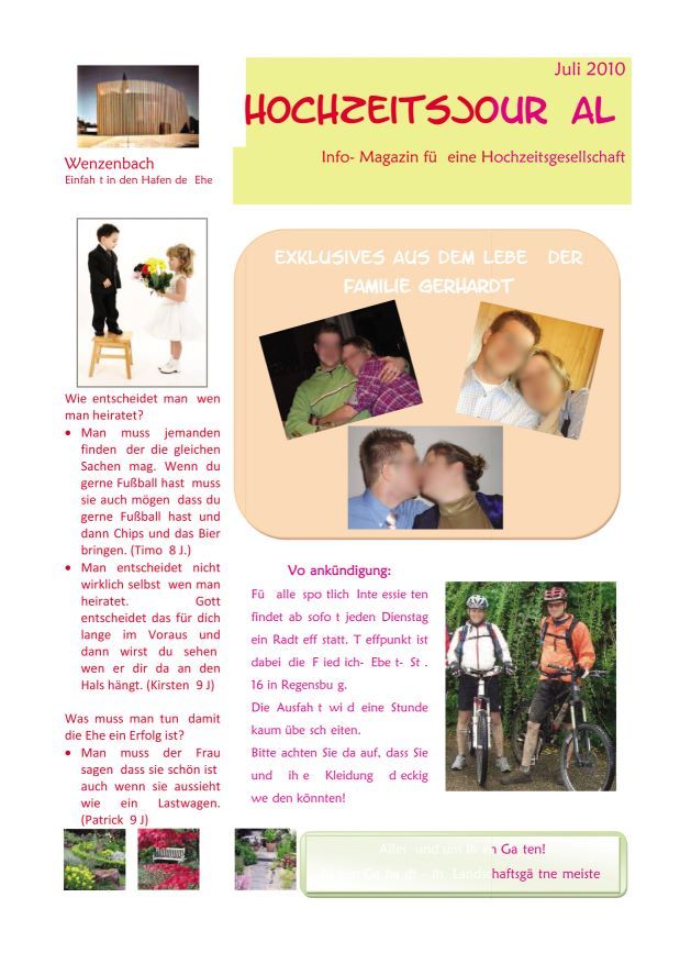 | Schon ab 7 Cent je Seite ! Wir erstellen Ihnen gerne ein Angebot. Der Druck erfolgt im Digitaldruckverfahren 4-farbig - A3 Papier 100g gefalzt auf A4 2 x geklammert Wir drucken auch kleine Auflagen ! Als Vorlage reicht eine PDF-Datei oder WORD-Datei. |
